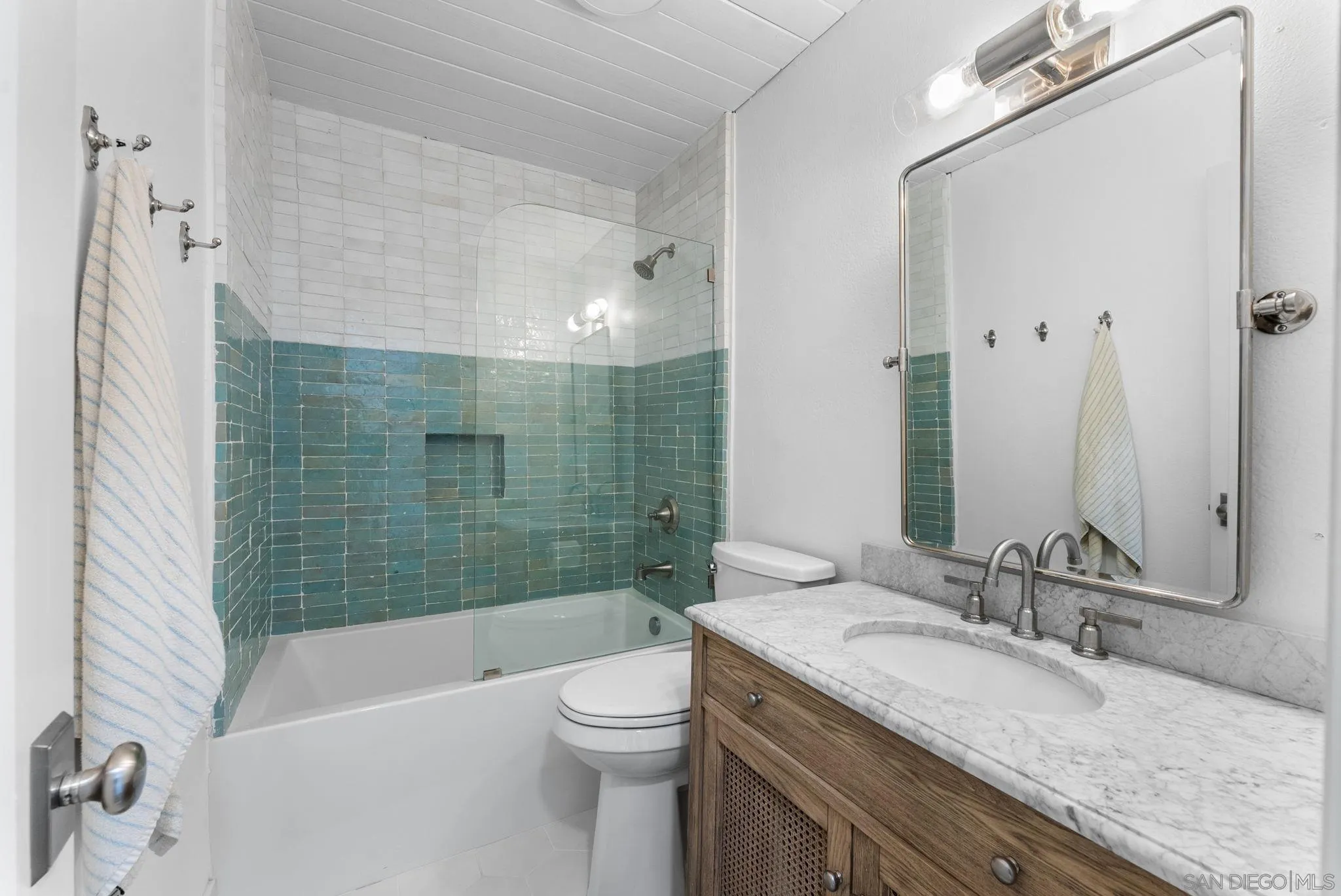 Welcome to 144 Coop Ct., a beautifully reimagined 2-bed, 2.5-bath townhome in one of Leucadia's most walkable pockets--just minutes to Beacon's and Grandview beaches, plus the restaurants, cafes, breweries, and shops along the 101. Thoughtfully updated with a clean coastal-modern palette, this home blends everyday comfort with curated designer touches throughout. Inside, French oak engineered hardwood floors, custom wood paneling, and soft linen Roman shades create a relaxed, elevated feel. The renovated kitchen features white quartz countertops, stainless steel appliances, a panel-ready dishwasher, and a custom plaster hood, framed by an arched passthrough that subtly separates the kitchen from the garage entry. The bright living area centers around a restored fireplace and a sculptural linen pendant, perfect for cozy evenings or slow mornings. Upstairs, the primary suite is filled with natural light from a skylight and includes a beautifully updated bath with an oversized walk-in shower, XL niche, and hand-crafted white zellige tile. The guest bath offers two-tone zellige tile, a soaking tub, and an Italian Carrara marble vanity. The guest bedroom features a built-in closet system and a private patio with great sun and ocean breezes. Outside, the private yard is designed for indoor-outdoor living with space for lounging and dining, upgraded drainage, matte terracotta-style porcelain tile, and mature plantings including passion fruit, hydrangeas, and olive trees. Additional highlights include a tankless water heater and newer LG washer/dryer. No HOA.