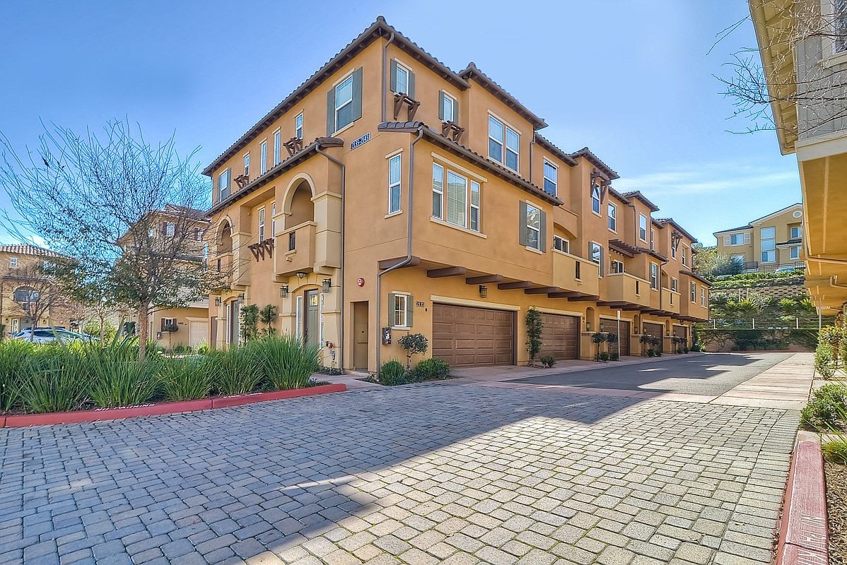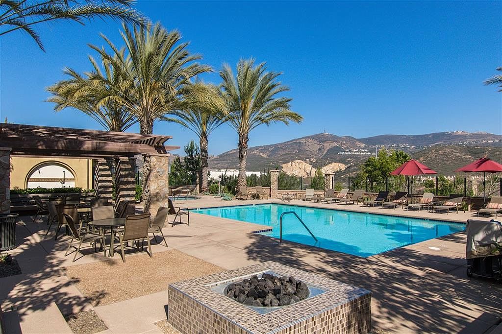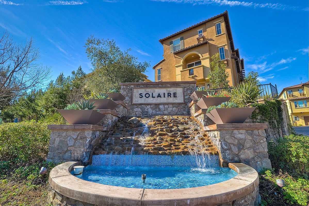 Immaculate & modern townhome in highly desired Solaire. Features include: 2 bedrooms & a bonus room, smart house technology w/Control 4, open floorplan, Pergo flooring, LED lighting, designer window coverings, kitchen w/granite counters & stainless steel appliances, sleek modern bathrooms, master suite w/walk-in closet, W/D in unit, attached 2 car garage, no units directly behind, low HOA, prime location close to San Elijo & La Costa shopping centers & restaurants, great schools, hiking trails & short drive to the beach. Looking for a home that has a great location, top schools, feels brand new & has all the upgrades at a price you can afford? The focal point of the family room is the contemporary rock wall fireplace. Flex space near family room can be used as a formal dining room, office, play room, or guest suite. Master Bedroom has a walk in closet, dual vanities, and extra wardrobe for endless clothing storage. Pool and Spa are lined with mature palm trees and includes a gorgeous fire pit. Enjoy sunsets from your new pool as you lounge and barbecue dinner. This unique location serves Carrillo Elementary located in Carlsbad, San Elijo Middle and San Marcos High School. It is the perfect home or investment with location, amenities, technology, low monthly fees, attached garage, open floor plan, oversized kitchen island and designer finishes. The low mello roos will save you hundreds per month. Seller will include the fridge and washer/dryer with the purchase of this home. This home has it ALL!
