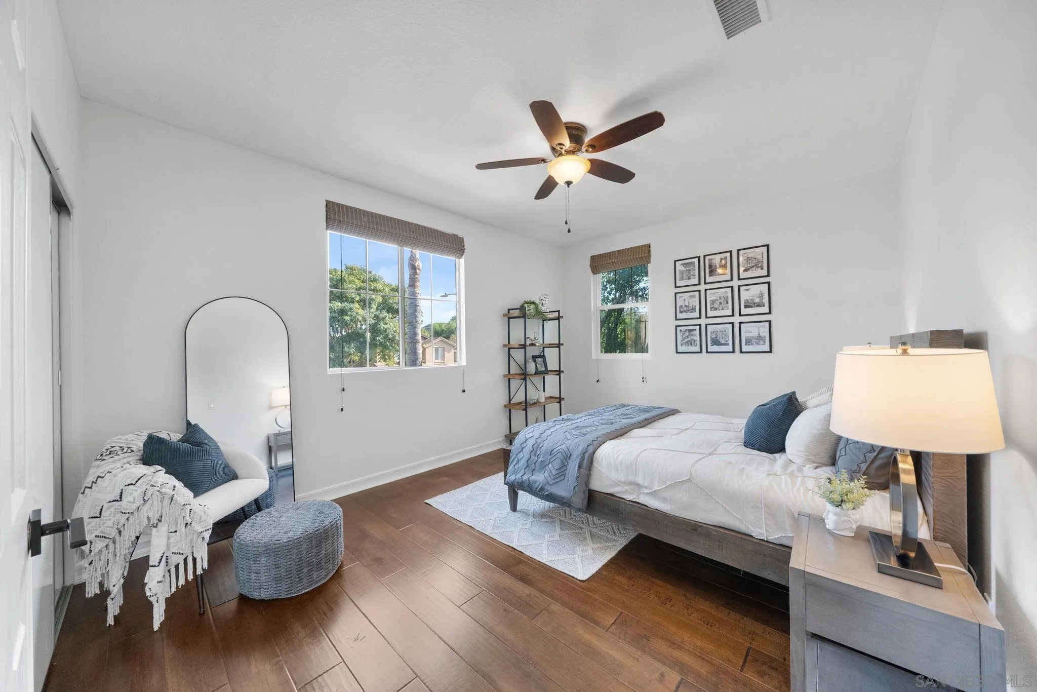 Welcome to 2364 Summerwind Place, a stunning 5-bedroom, 3-bath home nestled in Carlsbad's highly sought-after Hidden Ridge neighborhood. This beautifully maintained residence blends timeless elegance with modern upgrades, offering an open and inviting floor plan perfect for both entertaining and everyday living. Step inside to find newly installed hardwood floors, plantation shutters, and abundant natural light throughout. The spacious kitchen features sleek quartz countertops, white cabinetry, a designer tile backsplash, and stainless-steel appliances, all opening to the cozy family room for seamless indoor-outdoor flow. Enjoy the convenience of a full bedroom and bath on the main floor, ideal for guests or a home office. Upstairs, the large primary suite boasts a private balcony with peaceful views and a luxuriously remodeled walk-in shower. A spacious loft provides the perfect bonus area for a playroom, media space, or gym. The tranquil backyard offers the perfect retreat with lush landscaping and serene views--ideal for relaxing or entertaining. Residents of Hidden Ridge enjoy access to scenic walking trails, grassy open spaces, and a community sand volleyball court, plus HOA amenities including RV and boat parking. Located just minutes from Carlsbad Village, beaches, Legoland, and the Carlsbad Flower Fields, this home also feeds into top-rated Carlsbad schools--Kelly Elementary, Valley Middle, and Carlsbad or Sage Creek High. Experience the best of coastal living in one of Carlsbad's most desirable communities! ***