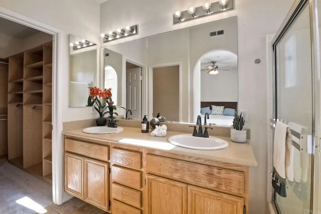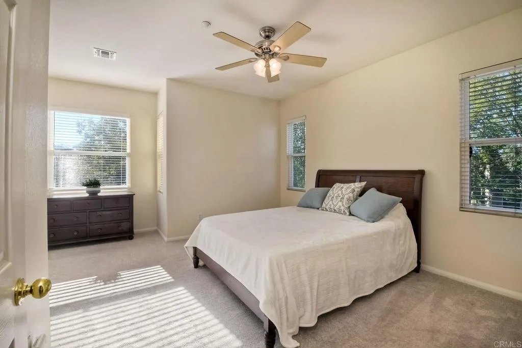 Welcome to this well maintained corner unit townhome in the desirable community of Valencia in Rancho Carrillo. This home benefits from having an attached two car garage, leading into the spacious kitchen with plenty of storage. The light filled living space leads onto a delightful patio area. Upstairs you'll find two generously sized primary suites, each with an ensuite bathroom. The second bedroom features its own deck. The upstairs laundry closet easily accommodates a full sized washer and dryer. Rancho Carrillo Master Association includes a lap pool, recreation pool and jacuzzi and lots of hiking, walking and biking trails. Valencia has its own pool, jacuzzi, BBQ areas and playground. Nearby Bressi Ranch offers quality shopping, restaurants and grocery stores. All this and a quick 20 minute or so drive to Carlsbad beaches!