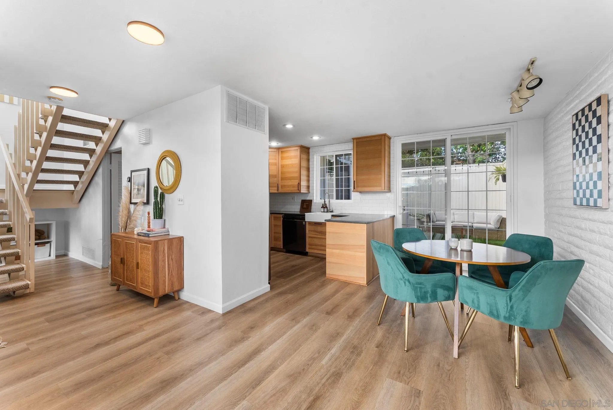 This beautifully updated Mid-Century Modern townhome captures the timeless charm of the original La Costa lifestyle--once a favorite escape for Hollywood icons and the Rat Pack. Designed by famed architect Edward Fickett, a visionary who shaped post-war California Modernism with his iconic homes, resort properties, and award-winning mid-century designs, the residence reflects his signature blend of natural light, clean lines, and effortlessly livable style. Flooded with sun through tall windows and soaring ceilings, the home features thoughtful upgrades throughout, including luxury vinyl plank flooring, a recently remodeled kitchen, custom-designed bathrooms, and designer lighting--all while preserving the cool vintage character that makes the property truly unique. As an end unit, it offers exceptional privacy and serene views overlooking the tree-lined hills of La Costa. Enjoy morning coffee and sunrise on the quiet, low-maintenance front patio, or entertain in the private backyard or on the upstairs deck. The unit also sits next to the community pool and a large open green belt. Additional conveniences include a 1-car garage with onsite parking and storage. All just a short stroll to championship golf, great restaurants, and the world-class spa at the La Costa Resort. A rare opportunity to own a stylish, private retreat designed by one of California's most celebrated architects--perfectly situated close to beaches, shopping, and top-rated schools.