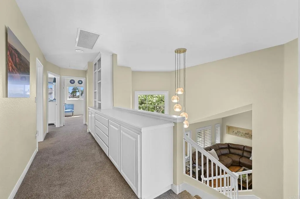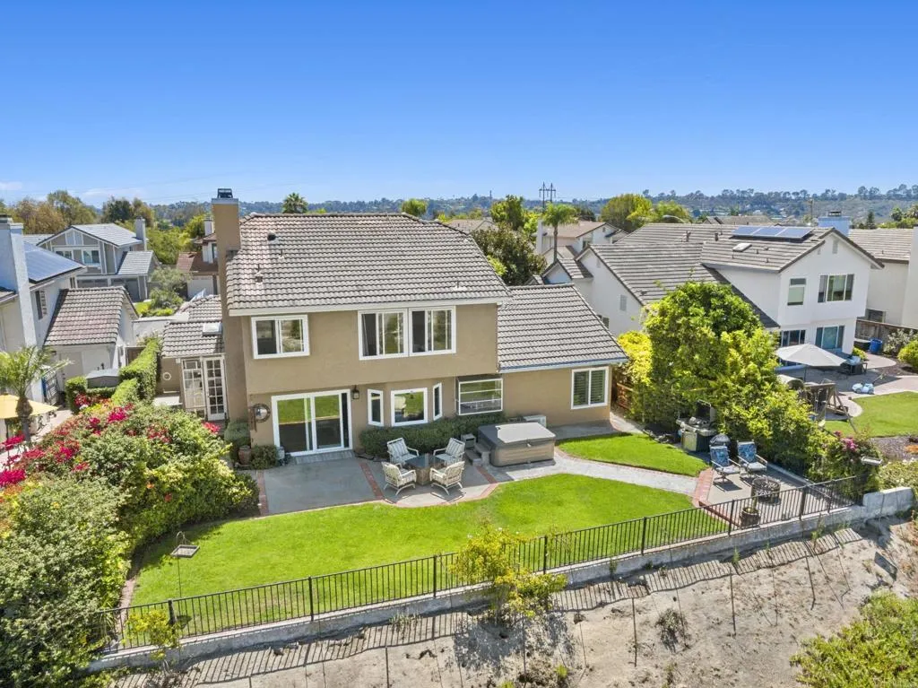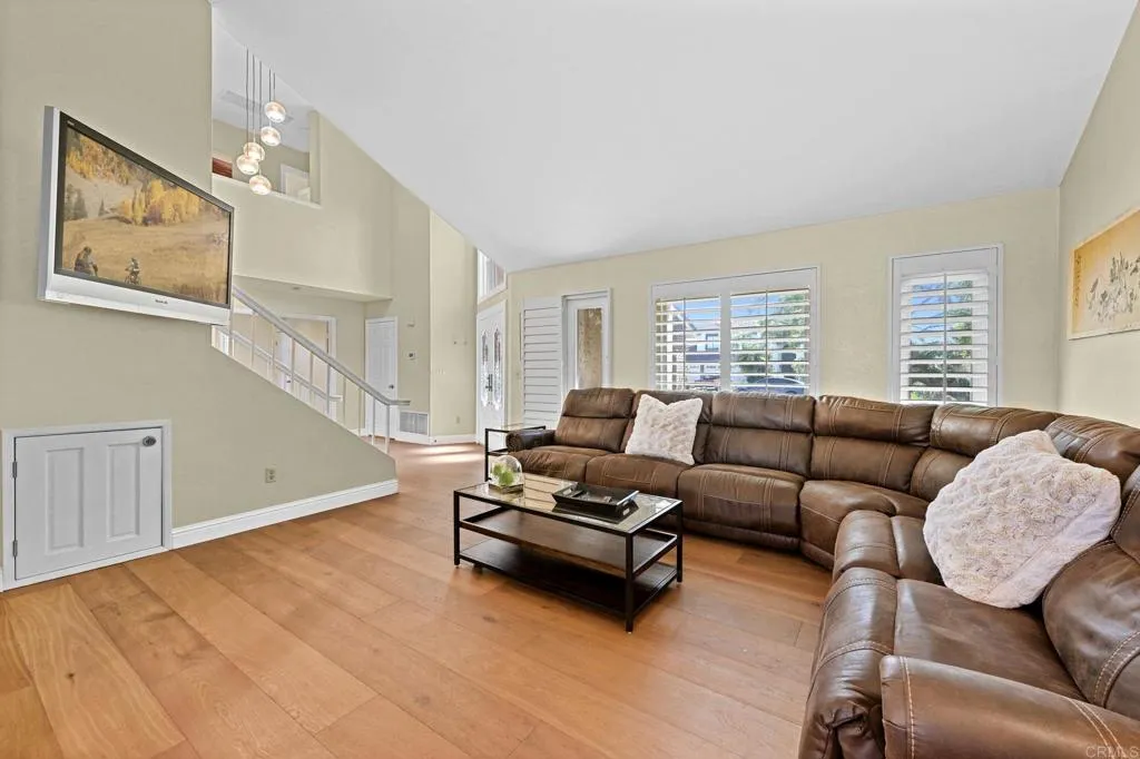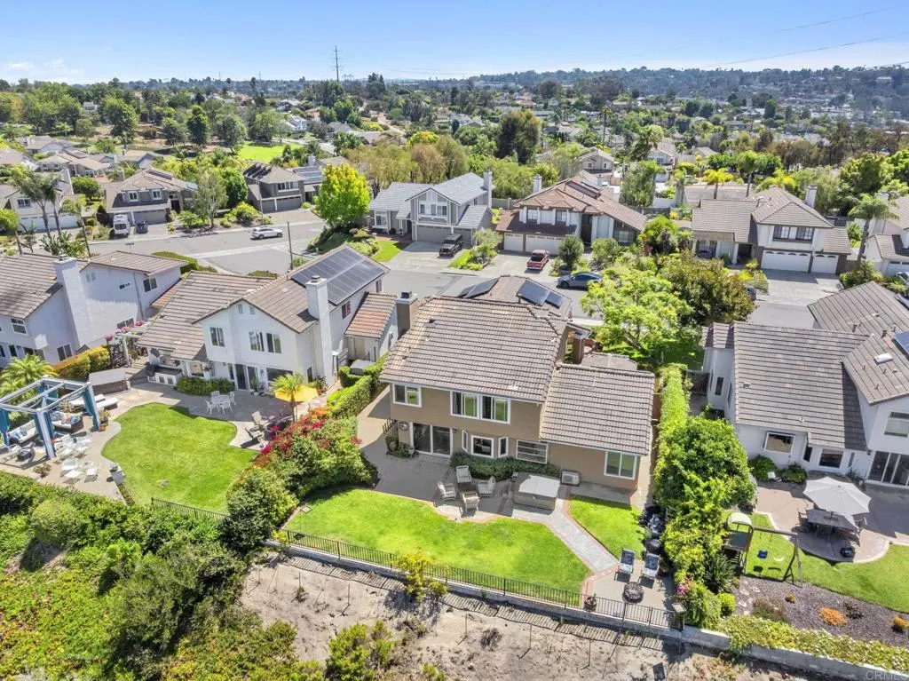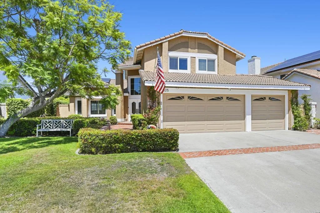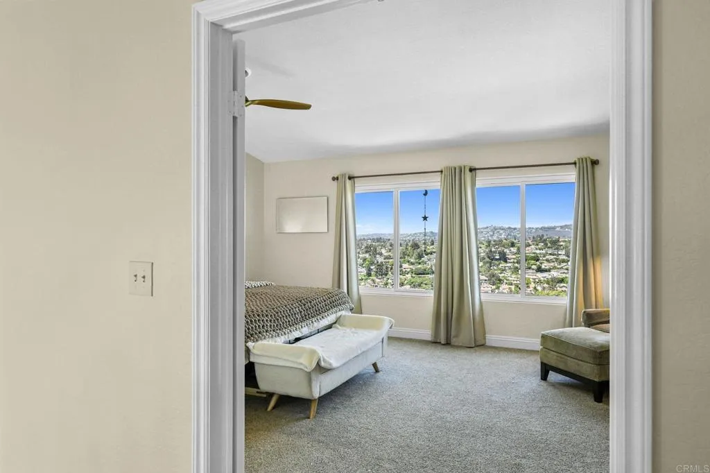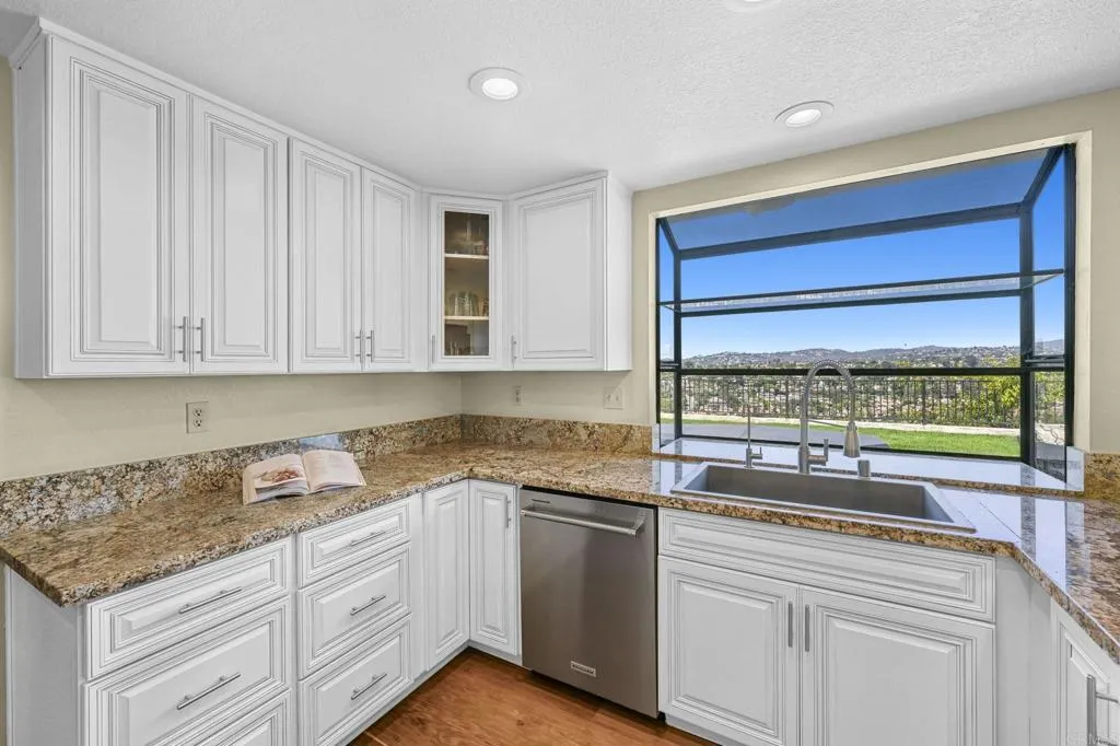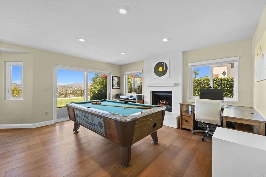 Perched on one of Encinitas highest vantage points, this home captures breathtaking panoramic views stretching north to Big Bear and surrounding peaks. A spacious open layout combines the kitchen and family room, complete with gas fireplace, upscale granite counters, newer neutral cabinetry, and a charming box bay window framing the view from the farm sink. French oak solid hardwood floors and a welcoming foyer set the tone. Convenient downstairs bedroom and full bath. Expansive primary suite offers double sinks, shower, and spectacular views. The 3-car garage provides ample space for projects, workbench, and storage, while the large driveway accommodates extra parking, all situated on a culdesac streeet. The backyard is an entertainers dream with room for a vanishing-edge pool, newly serviced above-ground spa, 15 solar panels, and two patios perfect for relaxing and soaking in the scenery. A rare opportunity to enjoy unmatched views and versatile living in Encinitas. This is more than a homeits a rare opportunity to live above it all, where refined interiors meet awe-inspiring views.