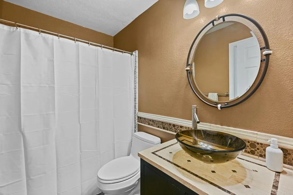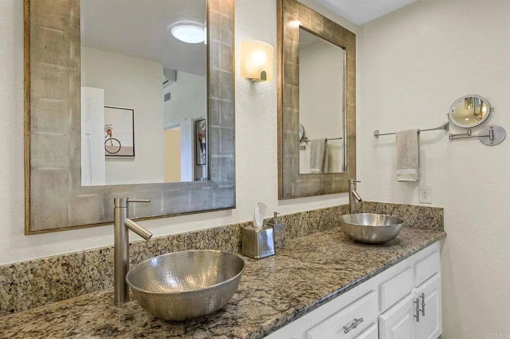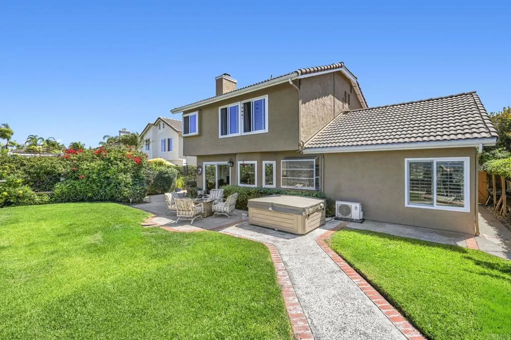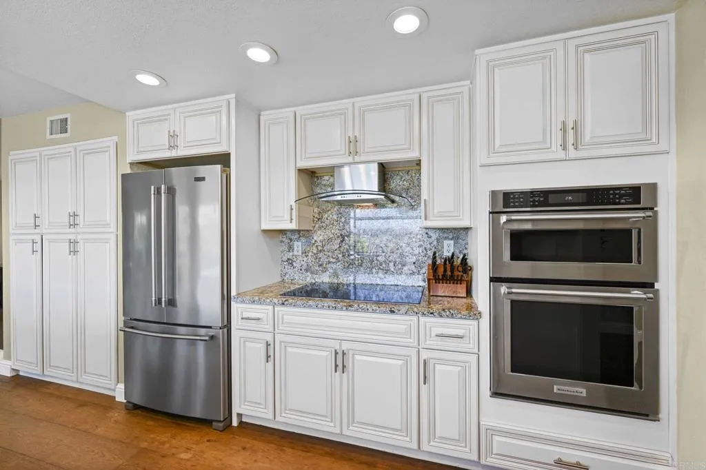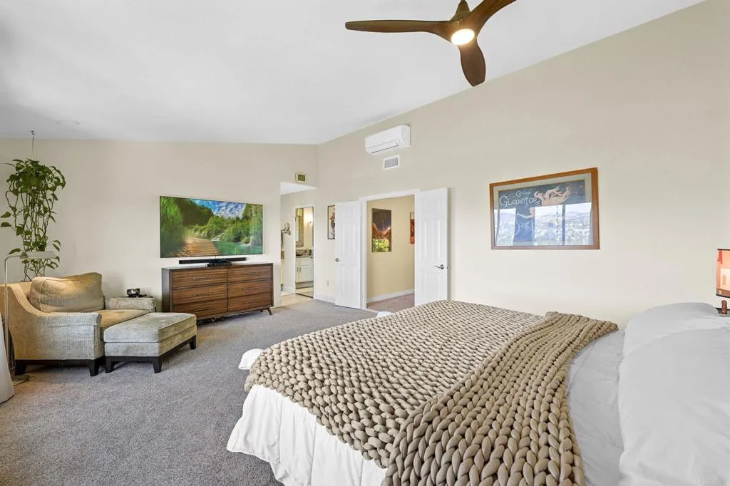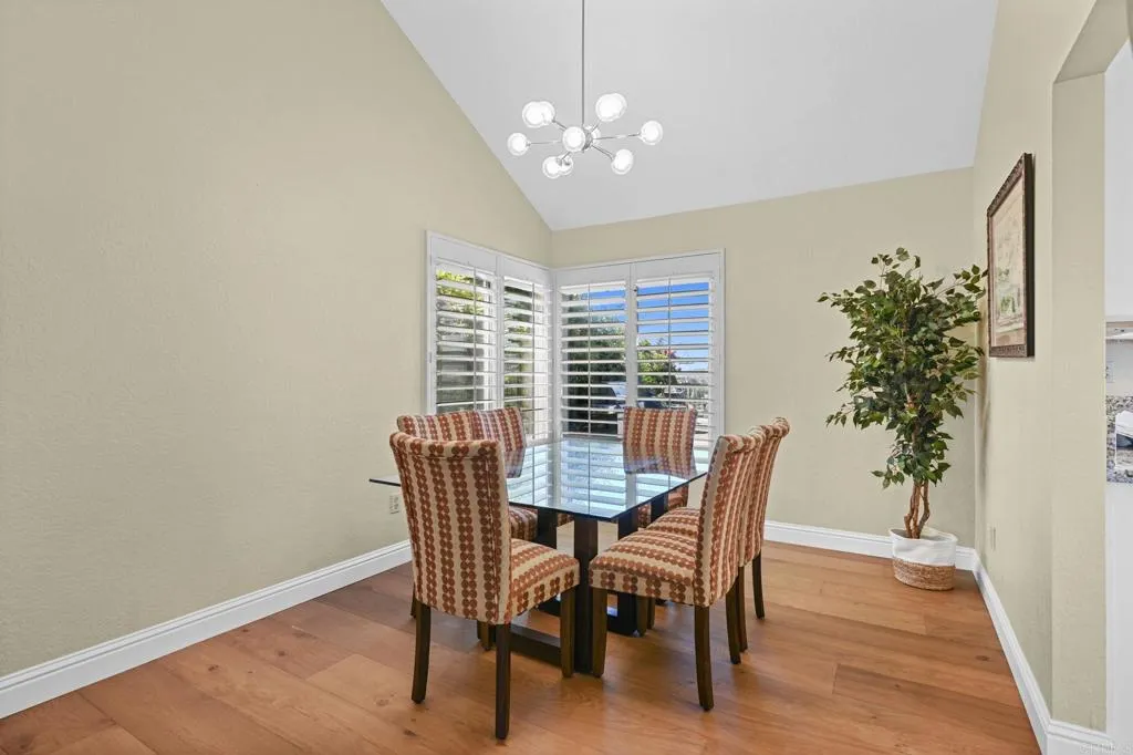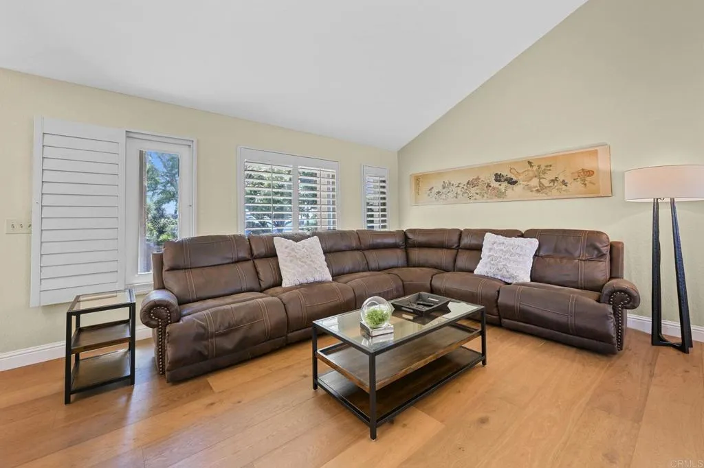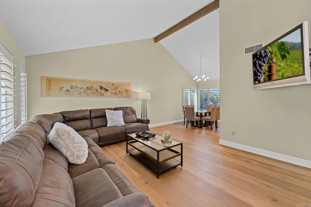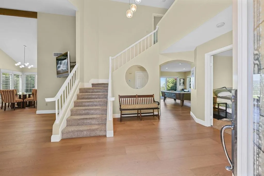 Perched on one of Encinitas highest vantage points, this home captures breathtaking panoramic views stretching north to Big Bear and surrounding peaks. A spacious open layout combines the kitchen and family room, complete with gas fireplace, upscale granite counters, newer neutral cabinetry, and a charming box bay window framing the view from the farm sink. French oak solid hardwood floors and a welcoming foyer set the tone. Convenient downstairs bedroom and full bath. Expansive primary suite offers double sinks, shower, and spectacular views. The 3-car garage provides ample space for projects, workbench, and storage, while the large driveway accommodates extra parking, all situated on a culdesac streeet. The backyard is an entertainers dream with room for a vanishing-edge pool, newly serviced above-ground spa, 15 solar panels, and two patios perfect for relaxing and soaking in the scenery. A rare opportunity to enjoy unmatched views and versatile living in Encinitas. This is more than a homeits a rare opportunity to live above it all, where refined interiors meet awe-inspiring views.